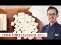That said, some marinades are more effective than others. It was easier for tasters to identify the soy and lemon-garlic marinades because the water-soluble flavor compounds in soy sauce and garlic are better at moving through high-moisture tofu than are the compounds found in red wine or yogurt. Considering that we often cut tofu into bite-size pieces with greater surface area (thus creating more points of entry for marinade), marinating can have a profound impact, seasoning the tofu not only at the surface but also deep inside.